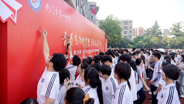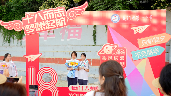 活動尾聲,全體學(xué)生在“金榜題名”簽名墻上留下青春印記,在十八歲成人打卡牌處合影留念,為儀式畫上圓滿句號。