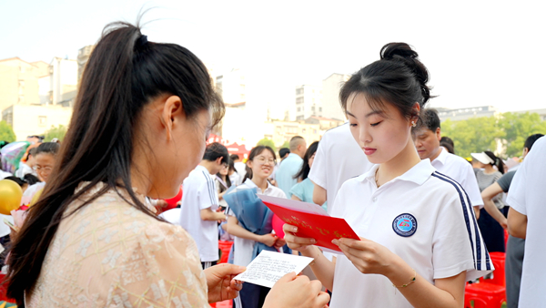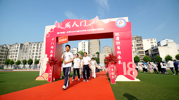 感恩環(huán)節(jié)溫情滿滿,家長與孩子互贈信件和禮物,學(xué)生以鞠躬禮表達(dá)對父母與師長的深切謝意。隨后,全體畢業(yè)生在家長老師的陪伴下,昂首闊步穿過“成人門”,邁向人生新起點(diǎn)。