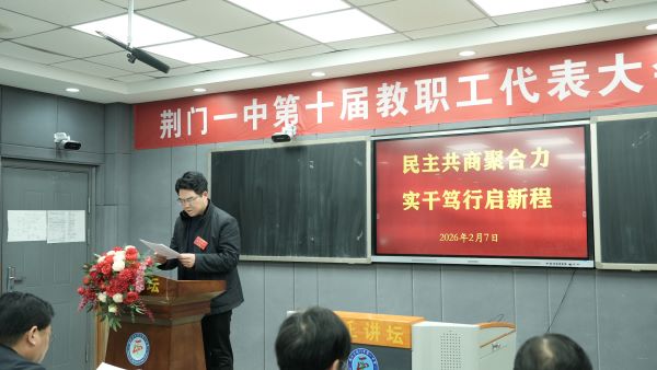 為深入貫徹落實(shí)習(xí)近平總書(shū)記關(guān)于教育的重要論述,堅(jiān)持依法治校、民主治校,凝聚全校教職工智慧與力量,推動(dòng)學(xué)校高質(zhì)量特色內(nèi)涵發(fā)展,2月7日,荊門(mén)市第一中學(xué)第十屆教職工代表大會(huì)第三次會(huì)議在學(xué)校錄播室隆重召開(kāi)。學(xué)校黨委書(shū)記謝澤滔,校長(zhǎng)馬斌,黨委副書(shū)記、副校長(zhǎng)高興華,副校長(zhǎng)陶先斌、王瀚卿,黨委委員嚴(yán)春麗等校領(lǐng)導(dǎo)及全體教職工代表出席會(huì)議,會(huì)議由黨委委員、工會(huì)主席習(xí)虎主持。