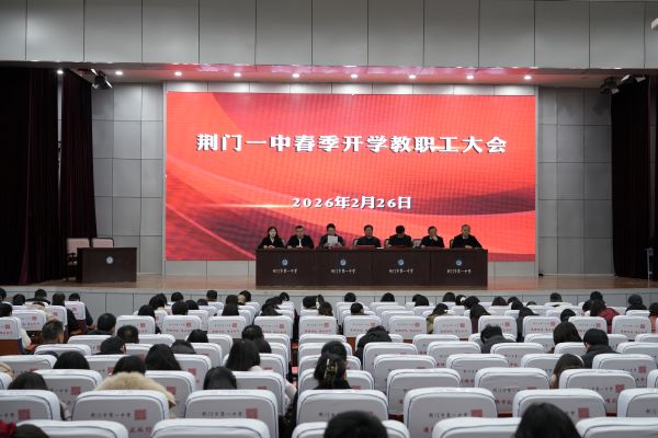 黨委書記謝澤滔做開學工作報告。謝書記充分肯定了學校在2025年取得的八大亮點成績,同時指出了存在的四點問題和不足,總結(jié)了三點反思。謝書記強調(diào)學校2026年將緊緊圍繞“品牌提升年”工作目標,強化黨建引領(lǐng)思政為先,不斷完善荊門一中精神文化譜系,賡續(xù)傳承優(yōu)良教育風尚;強化以人為本師生至上,不斷推動教師價值提升和學生健康成長;強化與時俱進改革創(chuàng)新,不斷規(guī)范辦學行為,提升辦學質(zhì)量,辦人民滿意學校。