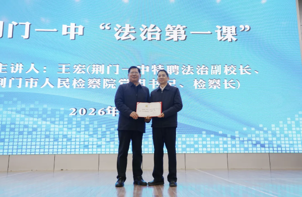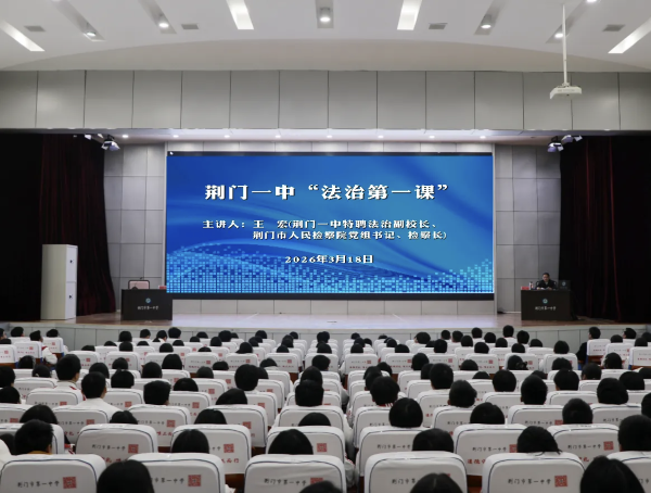 3月18日,我校成功舉辦2026年春季學(xué)期“法治第一課”活動(dòng),我校特聘法治副校長,荊門市人民檢察院黨組書記、檢察長王宏為高一高二師生近2000人帶來了一場精彩的法治教育報(bào)告。